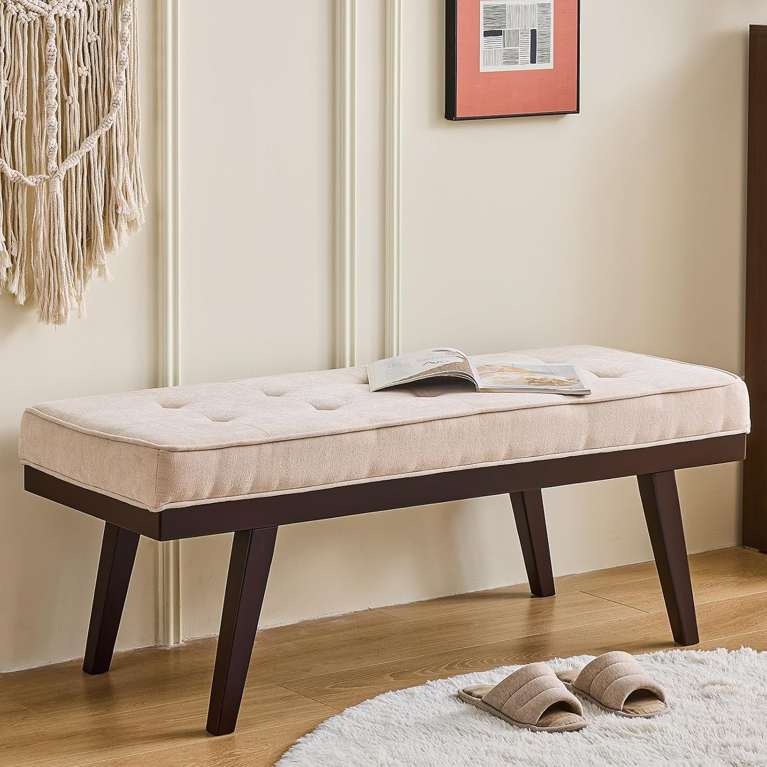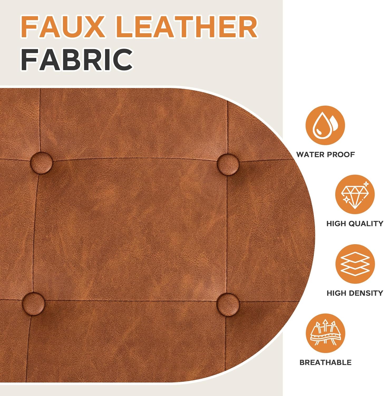 47.2" Button-Tufted Entryway Bench, Upholstered Faux Leather Ottoman Bedroom Bench, Rubberwood End of Bed Footrest Stool, Bench for Entryway Dining Room Living Room Bedroom, 300 LB, Brown