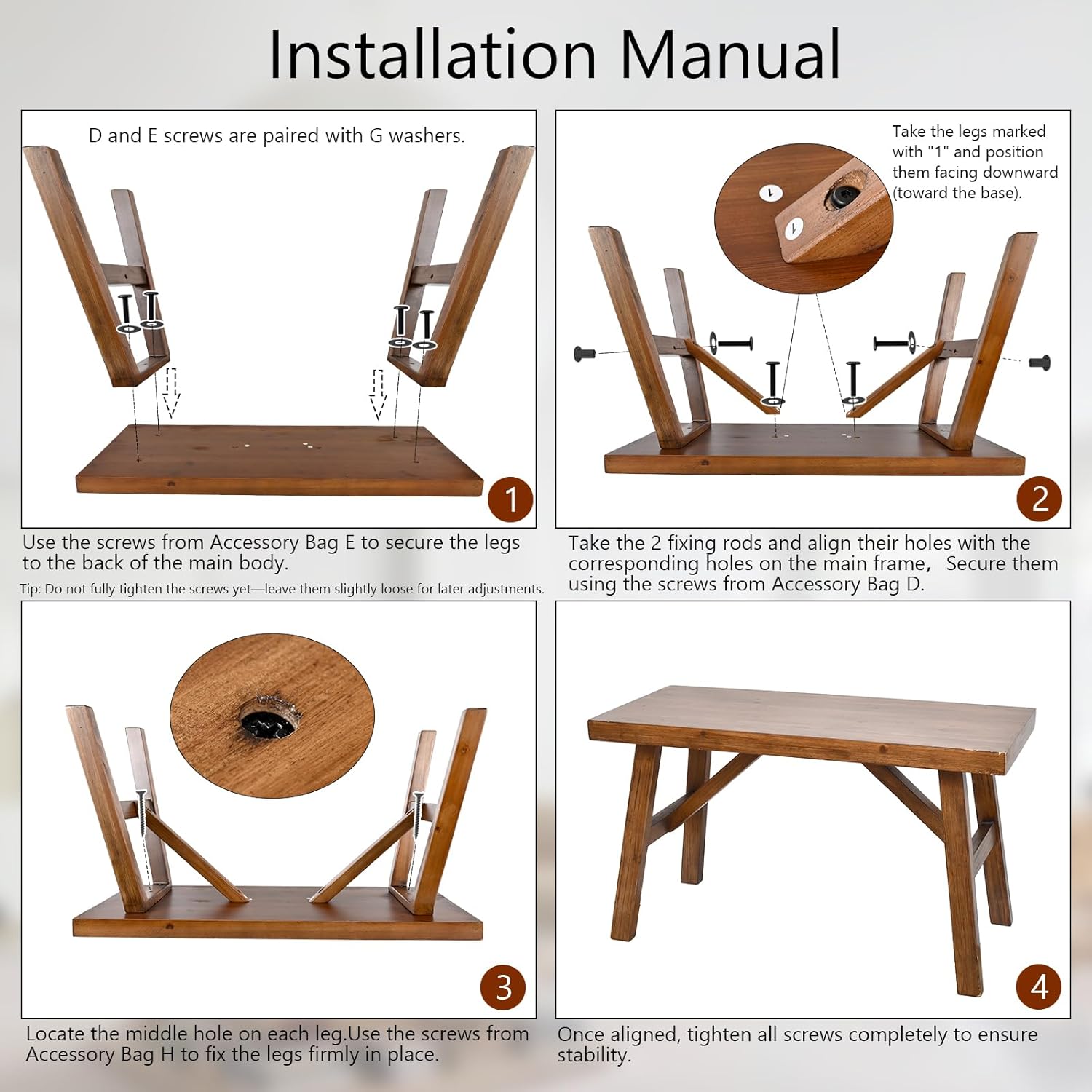 Handcrafted Solid Wood Bench, 30" - Farmhouse-Style Entryway Seating for Living & Dining Room, Rustic Design, Natural Finish