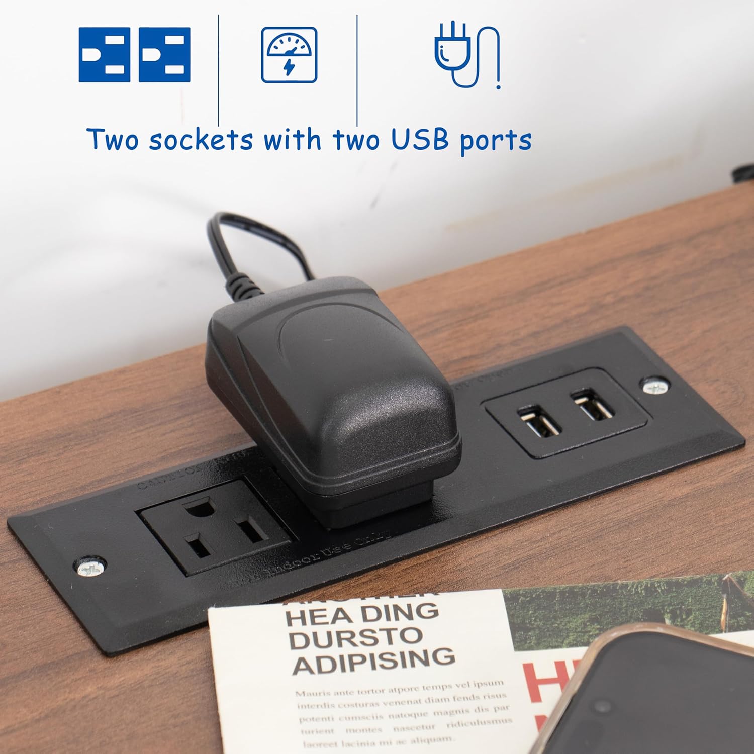 Large Record Player Stand, Vinyl Record Storage Holder, Record Player Table with Power Outlet, Turntable Stand with Wood Legs for Living Room, Office (Walnut)