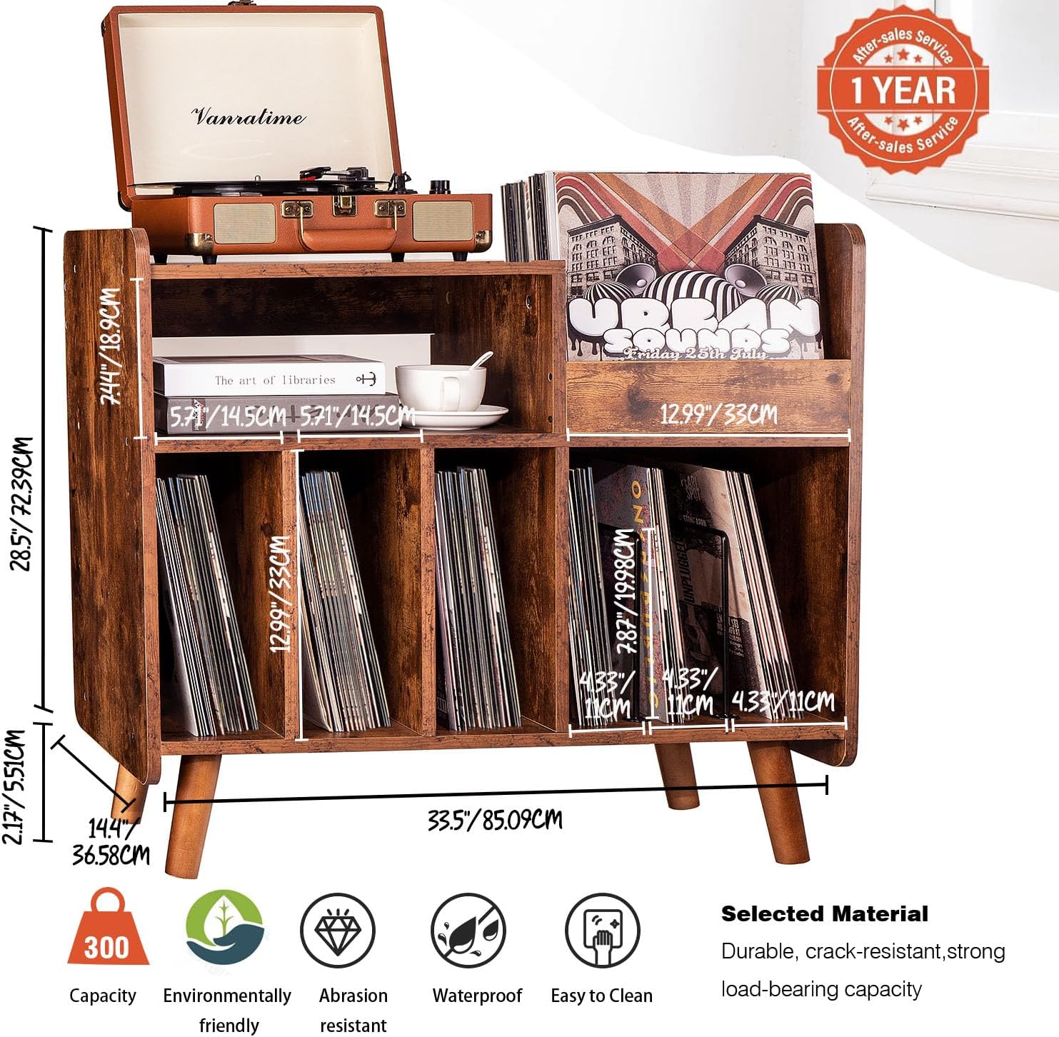 Record Player Stand, Large Record Player Table Cabinet with Open Vinyl Storage and Display Shelf Holds up to 350 Albums, Mid Century Wood Turntable for Living Room, Bedroom (Brown)
